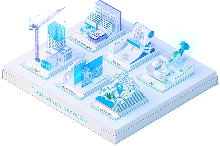 Конфигурация Платформы nanoCAD, включает модули: «СПДС», «3D», «Растр»